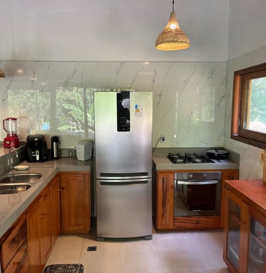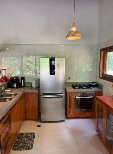 Cozinha equipada, pra preparar as refeições do jeitinho que vocês quiserem.